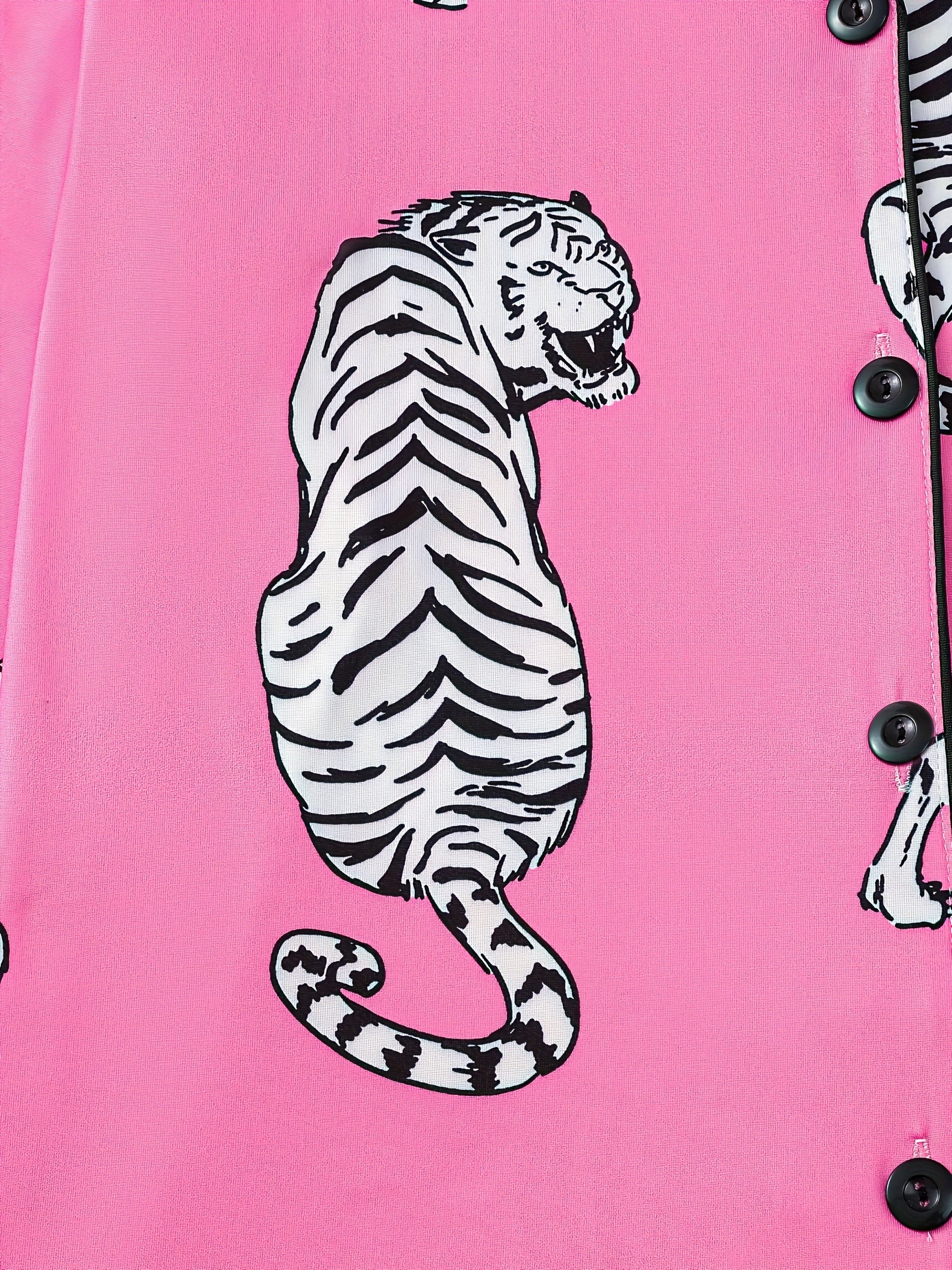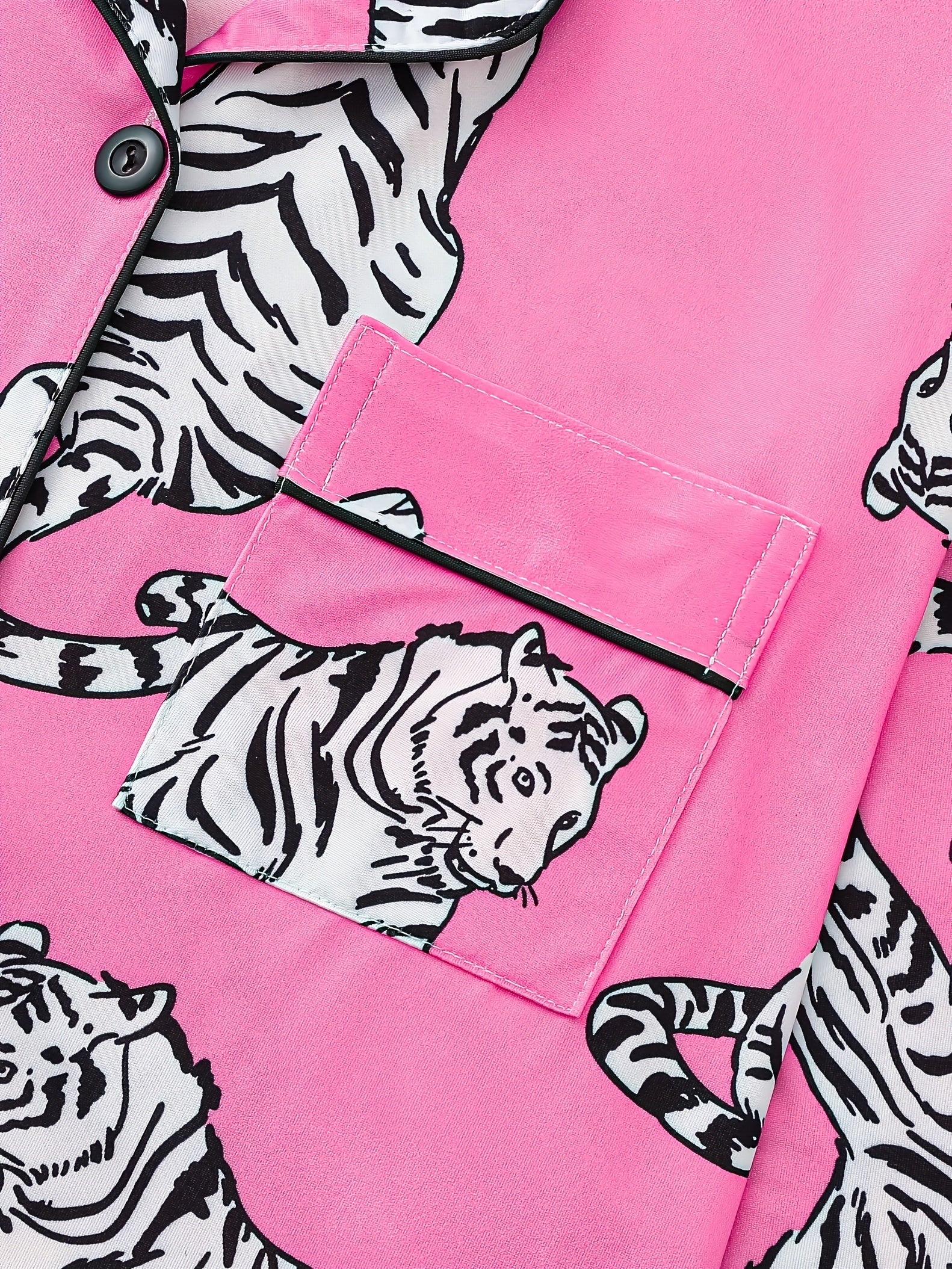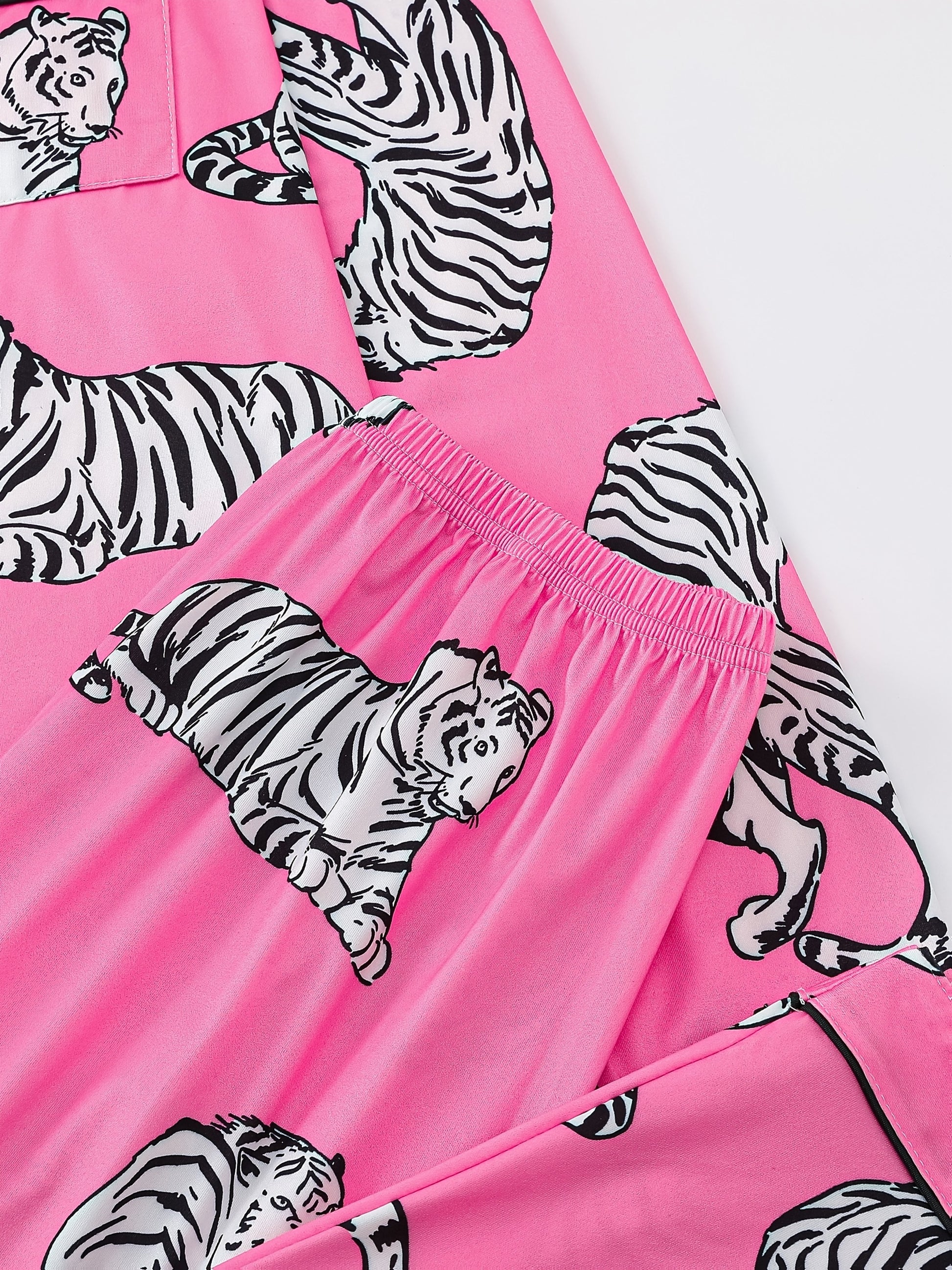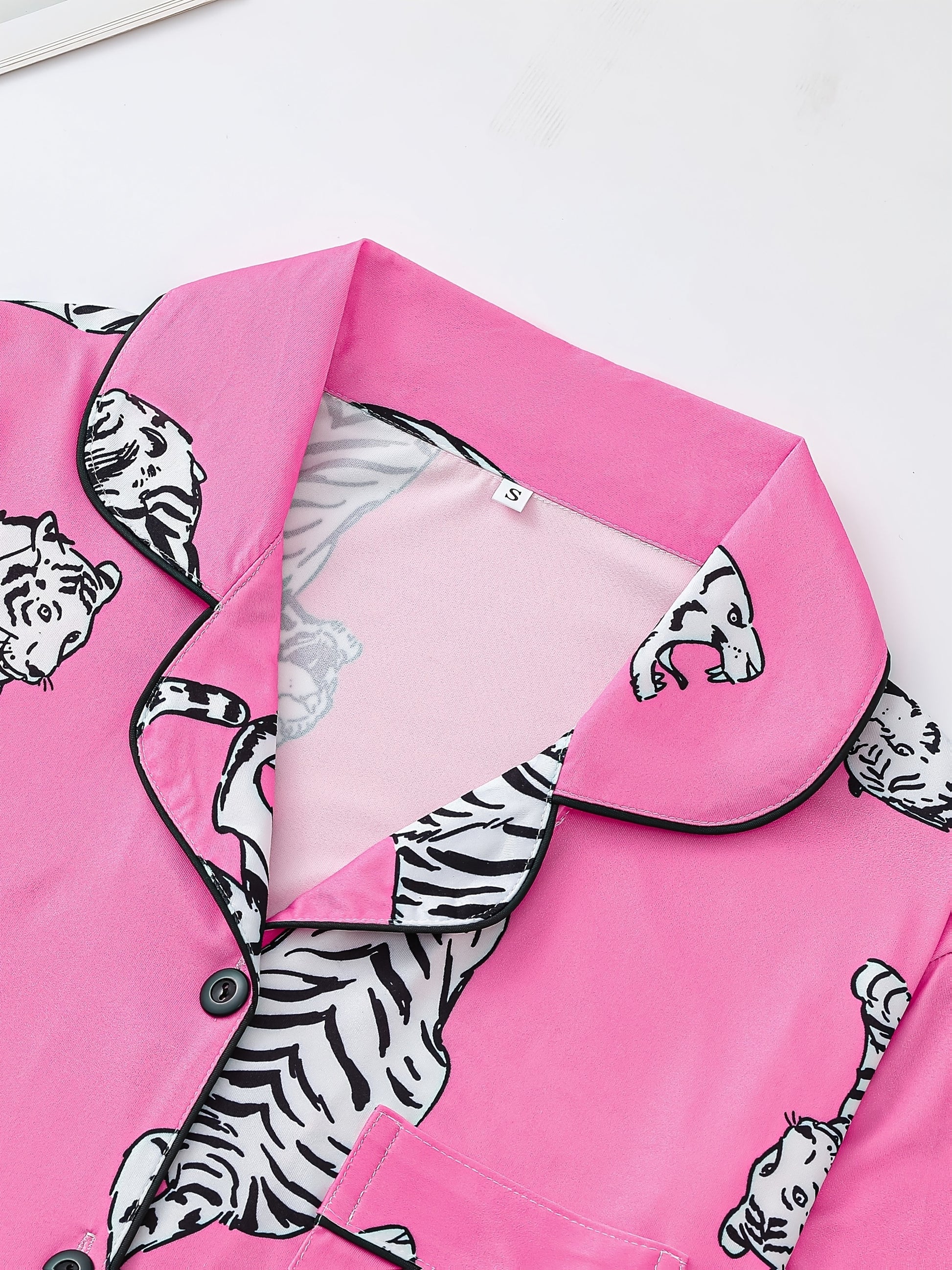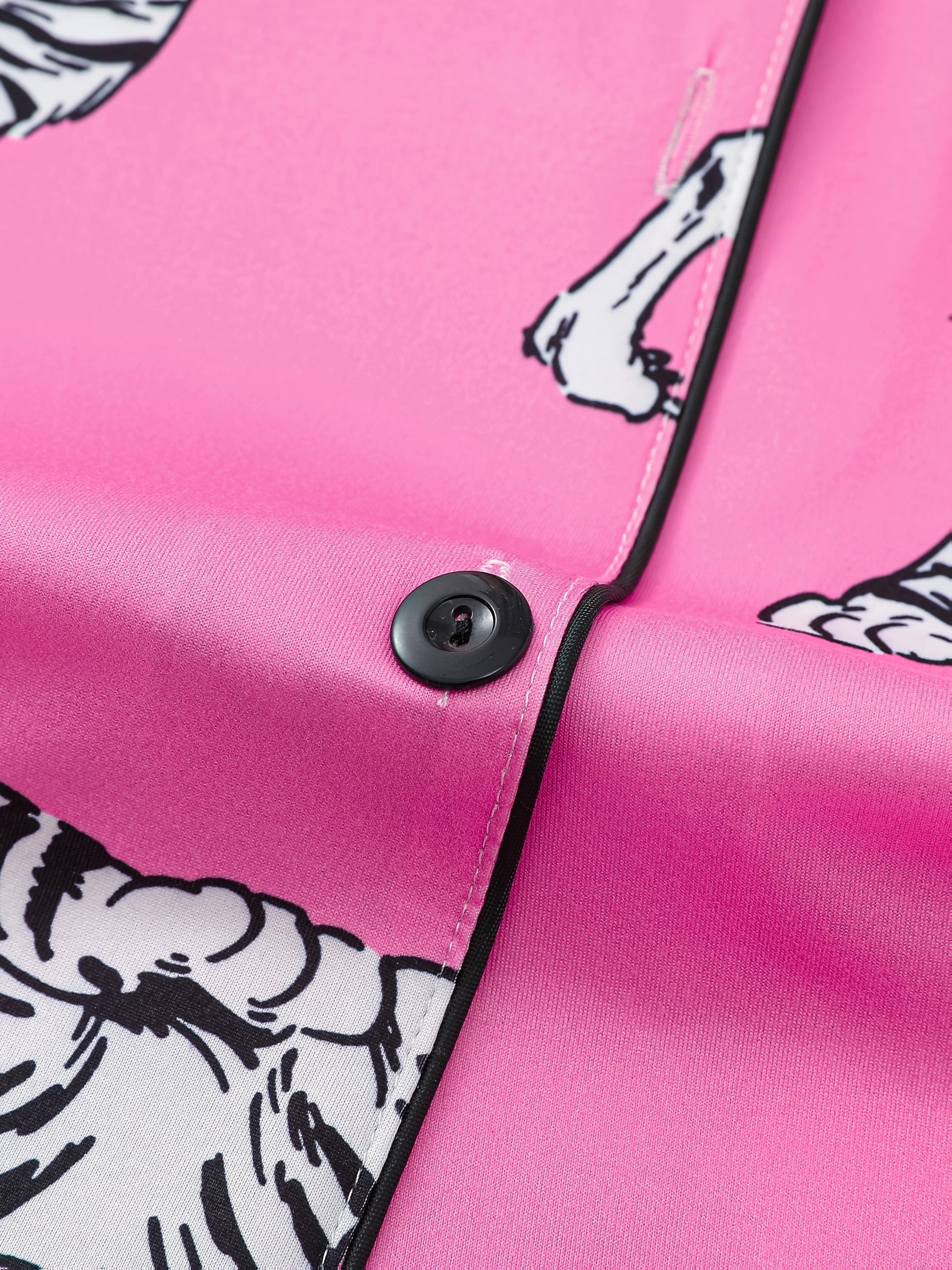 Two Piece Elegant Women's Sleepwear Set, Comfortable Fabric, Long Sleeved Button Up Top, Paired with Matching Pants, Printed All Over, Pocket Details, Suitable for All Season Wear